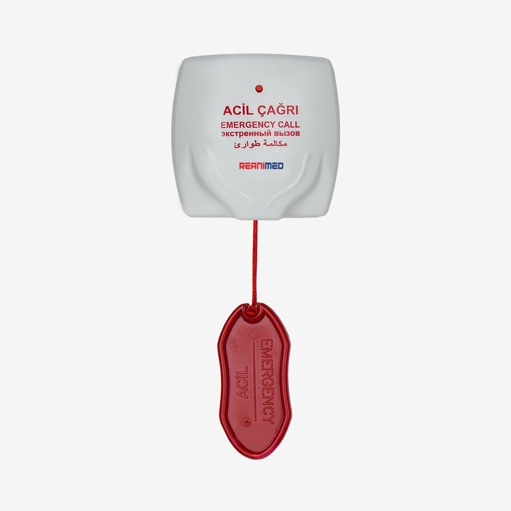 Это устройство с питанием от батареи 3 В, которое не подвержено влиянию влаги и влажности и отправляет информацию о экстренном вызове медсестре при нажатии на ручку. Когда заряд батареи становится низким, медсестре отправляется предупреждение о низком заряде батареи на вызывную панель. Вызов подтверждается светодиодом, который находится на нем.